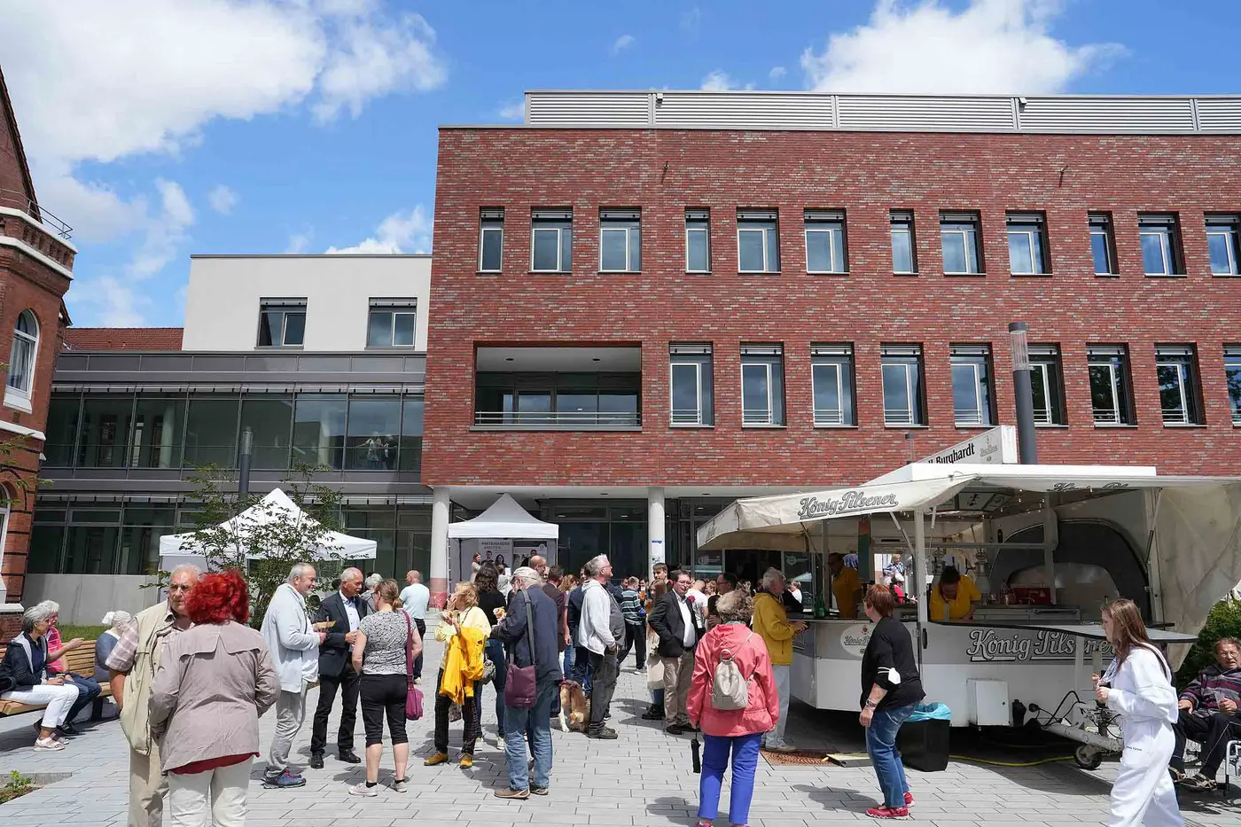 Das Marienstift Braunschweig gibt mit einem Fast Fertig Fest den Startschuss für die letzten Arbeiten am Neubau des Krankenhauses – Ende des Jahres sollen unter anderem die Zentrale Notaufnahme, die Information und die OP-Säle hierhin umziehen. Mitarbeitende und Gäste feiern bei strahlendem Sonnenschein, mit Musik und gutem Essen das bisher Geleistete und freuen sich auf den Endspurt.