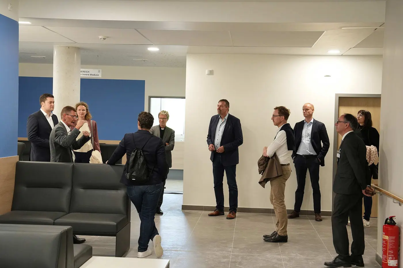 Im zweiten Stock zeugen viele lose Kabelenden und Rohre an der Decke von viel Technik – vier moderne OPs werden hier einmal eine optimale Versorgung der Patienten bieten. Immer wieder werden in der Führung Fachfragen gestellt, z.B. nach der Benutzung der Aufzüge zu den OPs. Es wird eine digitale Schaltung eingebaut, mit der Operierenden und Patienten Vorrang gegeben werden kann, beruhigt Jörg Kittner den Fragenden, der sich als Rettungssanitäter zu erkennen gibt und auf eine Verbesserung der jetzigen Situation hofft. Moderne Geräte, digitale Technik, medizinische Apparate – das hat seinen Preis: 40 Millionen Euro wird der Neubau voraussichtlich kosten, überwiegend finanziert vom Land Niedersachsen. Ruhig und gelassen erzählt Jörg Kittner von den Herausforderungen, einen Neubau mit Corona, weltweiten Lieferschwierigkeiten und -engpässen zu betreuen – aus seinem Mund klingt es ganz einfach. Nur aus den Nebensätzen erahnt man die enorme Leistung, wenn er versucht, noch einen dritten Aufzug zu realisieren oder die Wünsche der Operierenden nach einem vollständig zu verdunkelndem OP berücksichtigt.