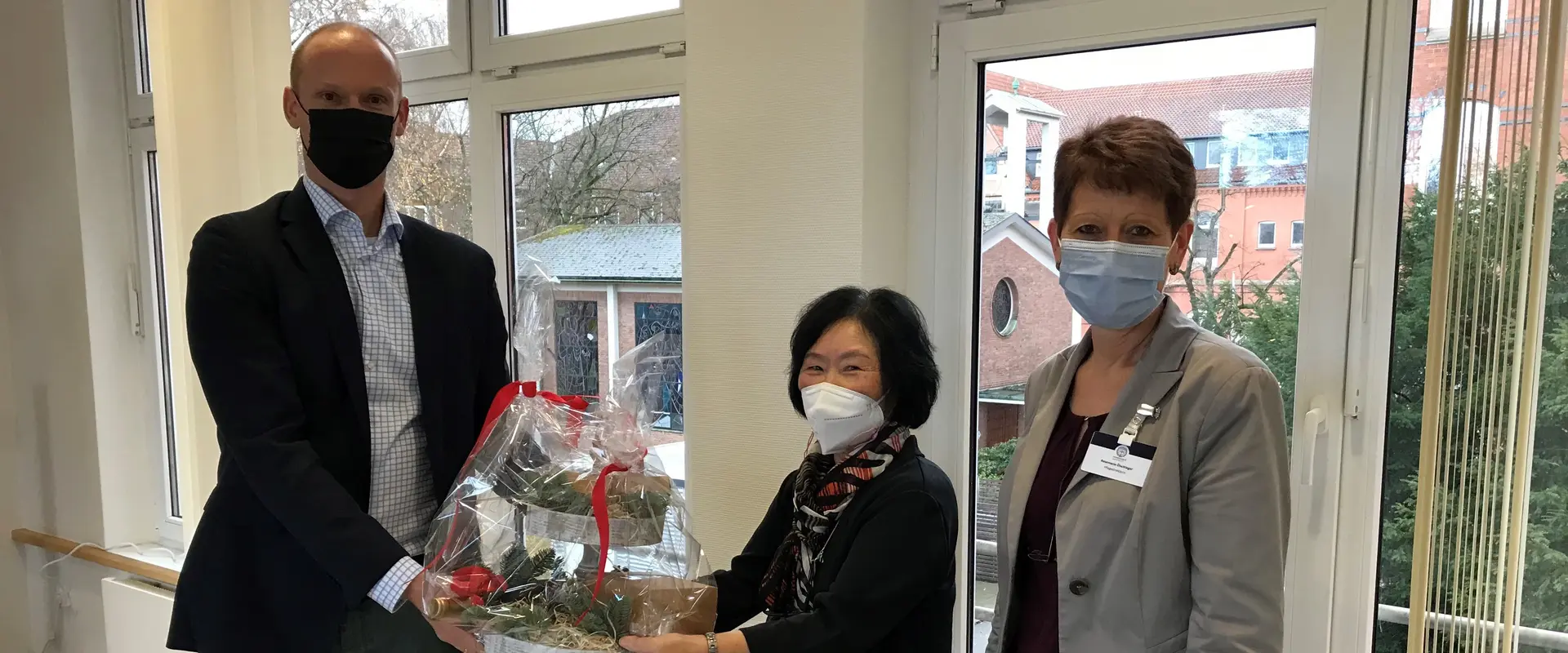 In dieser langen Zeit hat sie im Marienstift alle Stationen durchlaufen und viele Freundschaften geschlossen. Es erscheint auch mehr als leicht, mit ihr gut zusammenzuarbeiten oder befreundet zu sein, denn ihre Augen strahlen unter der Maske ununterbrochen und sie wirkt unglaublich zugewandt. „Ich bin dankbar für meinen Job und dafür, dass ich nach einer schweren Krebserkrankung vor zehn Jahren wieder vollständig fit bin. Ich denke immer positiv und habe viel Spaß.“ Das glaubt man sofort! Gut für das Marienstift, dass der nächste Vertrag für das Jahr 2022 bereits unterschrieben ist und Ye-Soon Gerlach ein großartiges Ziel hat: „Ich möchte die 50 Jahre im Marienstift schaffen!“ Aus Sicht des Geschäftsführers Dr. Jan Wolff und der Pflegedirektorin Rosemarie Ölschlager überhaupt kein Problem. „Bleiben Sie einfach so lange hier wie sie möchten“, sind sich beide einig. „Dann feiern wir auf jeden Fall eine große Party – bis dahin sollte es auch unter Corona-Gesichtspunkten wieder möglich sein.“