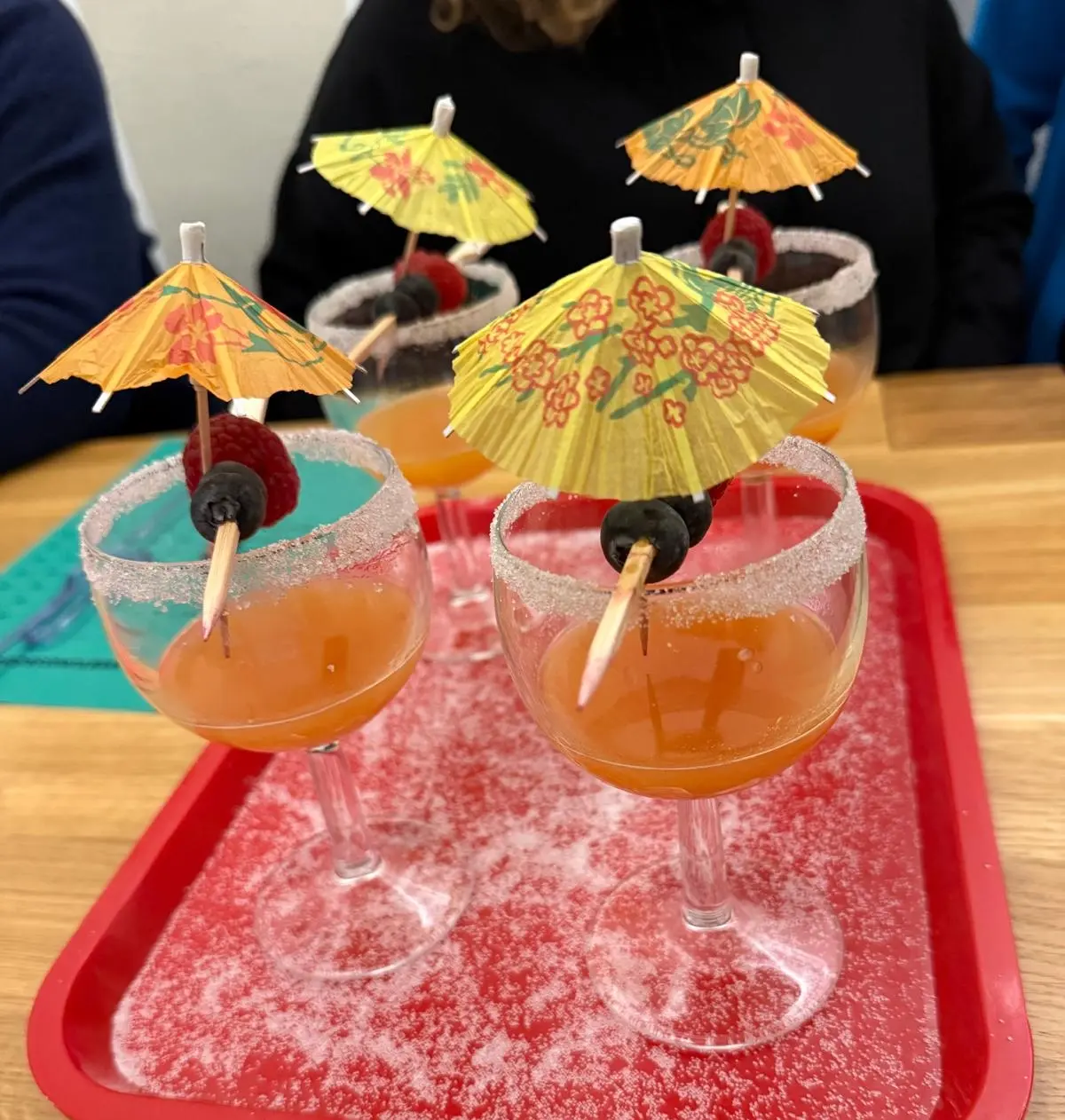 Als gemeinsamer Abschluss von zwei intensiven Tagen fand eine alkoholfreie Cocktailparty statt. In einem Wettbewerb entwickelten die Schüler:innen eigene Cocktailkreationen. In die Bewertung flossen unter anderem Geschmack, Kreativität und Präsentation ein. Der Baustein zeigte praxisnah, dass gemeinsames Feiern und Geselligkeit auch ohne Alkohol möglich sind und Spaß machen können.