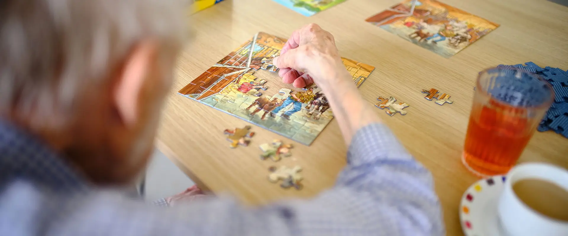 Dazu gehört unter anderem Roswitha Berft. Die Seniorin hat ihr ganzes Leben gearbeitet und möchte auch darüber hinaus weiterhin aktiv bleiben. In der Tagesförderung Leo hat sie eine Aufgabe gefunden, die nicht nur sinnstiftend ist, sondern auch Spaß macht. Dafür kommt sie jeden Morgen fußläufig aus dem Wohnbereich im Quartier. Im kleinen Gruppenraum stempelt sie die Tüten für die Hundekeks-Produktion. Wenn sie eine Pause braucht, setzt sie sich zu den Koordinatorinnen Beate Oertel und Vanessa Pechau und den anderen Teilnehmenden in den großen Gruppenraum und puzzelt, hört Musik oder kocht. Soziale Teilhabe kann in der Tagesforderung in vielen Bereichen ermöglicht werden und ist nicht nur im Alter wichtig: Auch für jüngere Menschen, die eine Förderschule besucht haben, aber noch nicht in der Lage sind, in einer Werkstatt zu arbeiten, bietet sie einen guten Startpunkt für den weiteren Werdegang. „Das kann auch eine Brücke ins Berufsleben sein“, erklärt Claudia Deichmann, die Leitung der Tagesförderung.