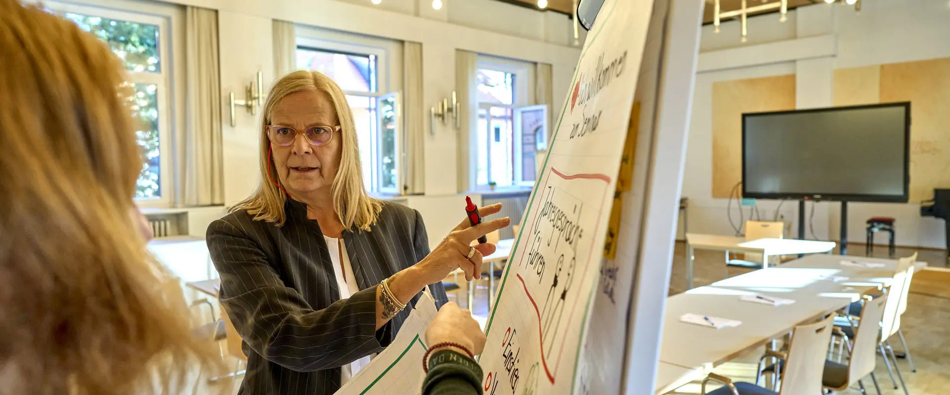 Angefangen haben die „Ta-Das“ 1985, als Antje Paul nach einem Praktikum bei der Lebenshilfe „voller Leidenschaft“ für die Behindertenhilfe war, wie sie sagt. Inklusion war noch ein Fremdwort. „Aber in Neuerkerode gab es bereits das Konzept ‚Ein Ort zum Leben‘. Und uns Auszubildenden der Heilerziehungspflege war es vor allem wichtig, Menschen in ihrer Weiterentwicklung zu fördern.“ Nach der Ausbildung blieb sie der esn treu, es folgten Jahre in der Praxis an verschiedenen Standorten der heutigen Wohnen und Betreuen, Lehrtätigkeiten an der Fachschule Heilerziehungspflege, ein Studium und inzwischen die Leitung der Personalentwicklung. Im Interview erläutert Antje Paul, warum das interne Bildungsangebot der esn von Rückenfit über Resilienz, Computerkurse und Zeitmanagement bis hin zu Moderationstechniken alles beinhaltet.