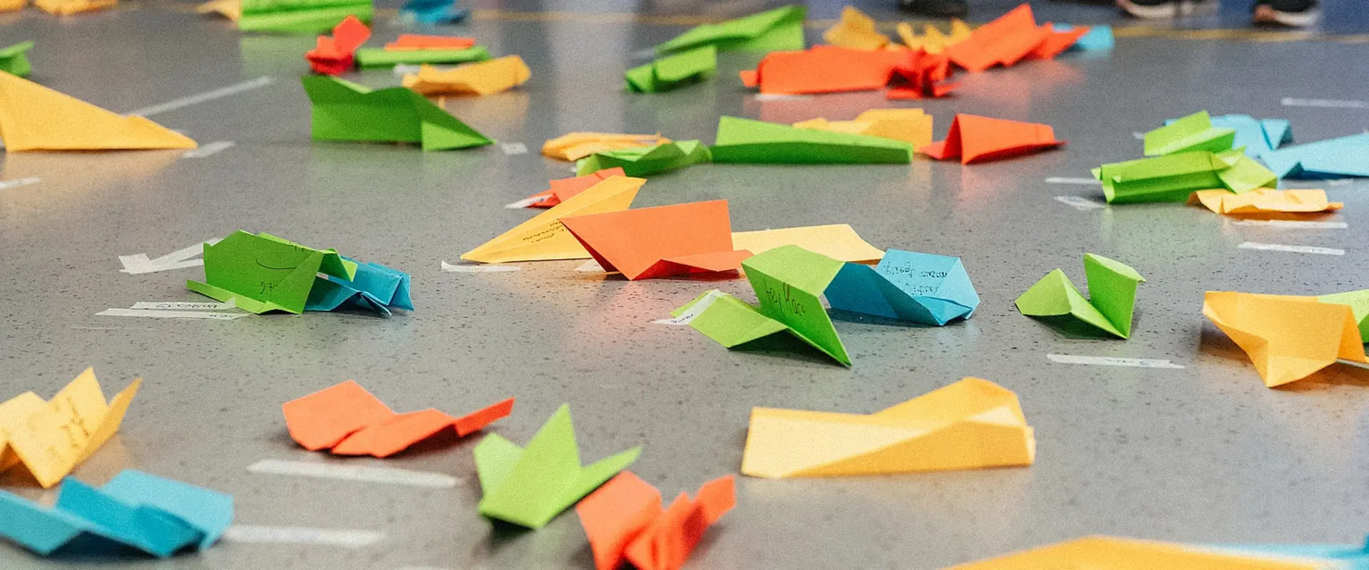 Auf unserem Mitarbeitendenfest 2024 haben Kolleginnen und Kollegen Botschaften auf Papier geschrieben, einen Flieger daraus gefaltet, und dann ging es hoch hinaus mit dem Applaus. Herausgekommen sind viele tolle Komplimente, die uns wirklich berührt haben und die inzwischen auch als Teil einer besonderen Videoaktion durch unsere Unternehmensgruppe geflogen sind.