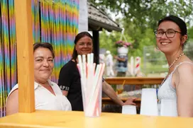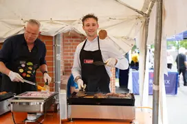 Wer dagegen das mittägliche Tief überbrücken wollte, wurde schnell an einem der zahlreichen Gastro-Stände glücklich: Bratwurst, Pommes, Waffeln, Poffertjes und Co. ließen keine Wünsche offen – und natürlich durfte auch der bekannte WuB-Burger nicht fehlen. Das abkühlende Nass gab es in Form von Cocktails, Bowlen, Schorlen, Slush-Eis und vielen weiteren Getränkevariationen.