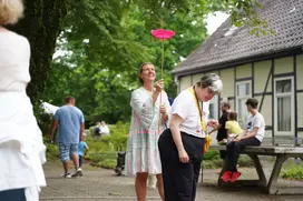 Das Wetter: stabil und die Stimmung: heiter. Unter besten Voraussetzungen lud die esn (Evangelischen Stiftung Neuerkerode) wieder zum traditionsreichen Sommerfest ein. Auf und rund um den Neuerkeröder Dorfplatz tummelten sich die Besucher:innen an den Ständen und Bühnen oder entspannten entlang des Wabe-Baches.