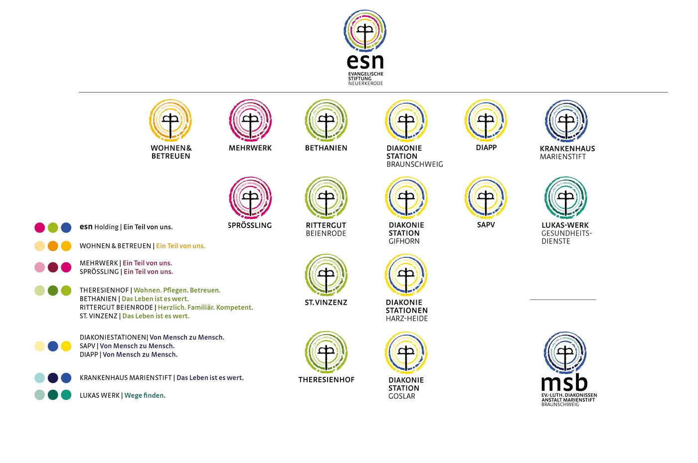 Die Evangelische Stiftung Neuerkerode (esn) hat am heutigen Mittwoch im Rahmen der „Zukunftsgeber“-Zertifizierung des Braunschweiger Arbeitgeberverbandes (AGV) ihr neues Markenkonzept vorgestellt. Grund für den Relaunch war unter anderem das starke Wachstum der Unternehmensgruppe in den vergangenen Jahren. Verschiedene Gesellschaften wie die Lukas-Werk Gesundheitsdienste, das Krankenhaus Marienstift, aber auch die Diakoniestationen Harz-Heide wurden in die Holding-Struktur integriert. Dadurch entwickelte sich eine Vielzahl von Markennamen und Logos, die insgesamt keine einheitliche Zuordnung zum großen Netzwerk der esn erkennen ließ.