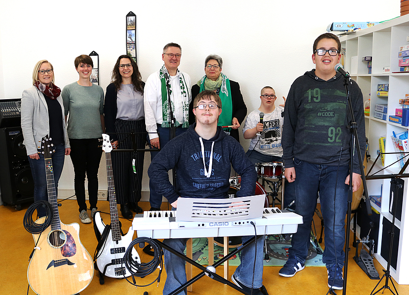 Dazu zählen unter anderem Heike und Bodo Nies vom FanEck. Sie organisieren bei Heimspielen regelmäßig ein Tippspiel für Fans, die Teilnahmegebühr wird gesammelt und für ein soziales Projekt bereitgestellt. Zugute kam die Spende dieses Mal dem Familienentlastenden Dienst (FED)Wolfsburg der Neuerkeröder Wohnen und Betreuen GmbH. „Wir unterstützen bereits seit einigen Jahren Projekte in der Region. Wichtig ist uns dabei, Einrichtungen und Vereinen mit benötigten Sachspenden unter die Arme zu greifen“, erklärt Bodo Nies. Die Rockwölfe, eine inklusive Band des FED Wolfsburg, freut sich nun über neue Notenständer, Mikrofone und Audiokabel. „Wir danken Ihnen für die Spende, die uns hier sehr hilft. Gerade die Band benötigt das Equipment für ihre kommenden Proben und Auftritte“, sagt Larissa Rein, Leiterin FED Wolfsburg.