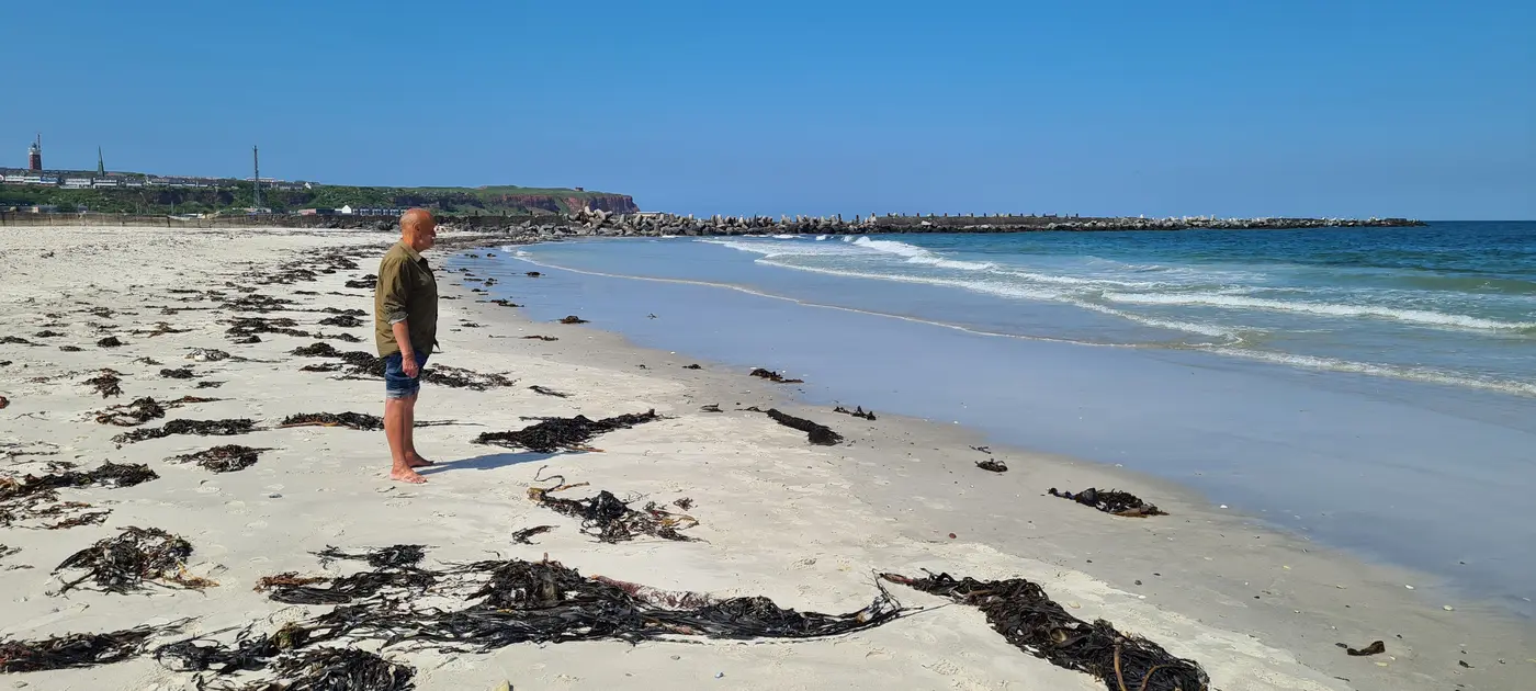 Am nächsten Morgen dann war der ganze Stress passé. Der Blick auf die strahlend blaue Nordsee, ließ jegliche Sorgen verschwinden. Herrlich. Wir machten uns fertig und schritten zum reichhaltigen Frühstück, um uns für den Tag zu stärken. In der Zwischenzeit gab Marcus Entwarnung: Die Tasche war wieder da. Der Imbissbetreiber hatte sie für ihn aufgehoben. Zum Glück: Denn wie sich herausstellte, war außerdem auch der Flugzeugschlüssel in der Tasche. Nachdem wir das Hotel verlassen hatten, trafen wir uns wieder mit Marcus und machten uns gemeinsam auf den Weg zur Fähre, um zurück zur „Düne“ zu fahren. Dort angekommen, machten Eberhard und ich bei bestem Wetter noch einen ausgiebigen Strandspaziergang. Wir staunten nicht schlecht, als uns auf einmal mehrere tief-dunkle Augen anschauten, die zwischen den Wellen herausblickten. Seehunde. An den Menschen gewohnt, drehten sie vor dem Strand ihre Kreise. Welch krönender Abschluss! Im Flugplatz-Restaurant aßen wir noch ein sehr leckeres Mittagessen, ehe wir uns gegen 14 Uhr wieder in die Maschine setzten und gen Heimat aufbrachen. Diesmal war Eberhard deutlich entspannter – er wusste schließlich was auf ihn zukam.