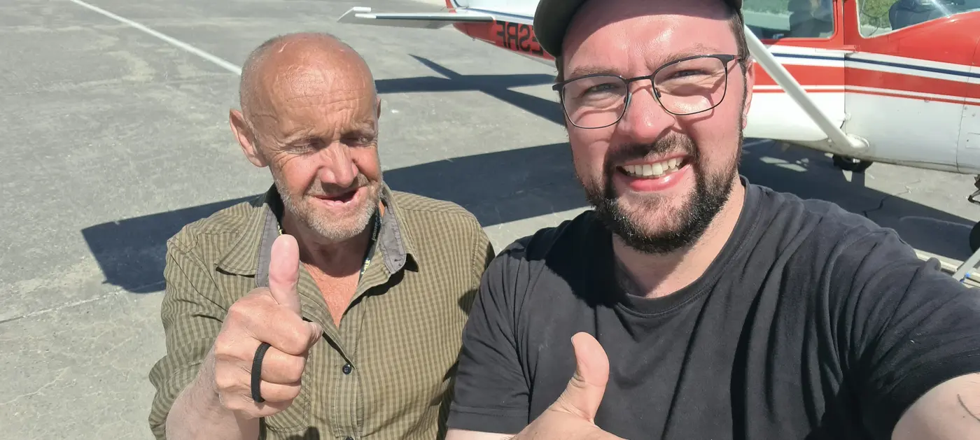 Im Herbst 2022 hatte Eberhard Grunwald Geburtstag. Als ich ihn fragte, was er sich wünsche, antwortete er mit leiser Stimme „Hubschrauber“. Ich fragte, ob er Lust auf einen Hubschrauber-Rundflug habe, was er bejahte. Also schaute ich im Internet nach passenden Angeboten und präsentierte ihm kurz darauf erste Ergebnisse. Unter anderem war dort das Bild eines Flugzeuges abgebildet, auf das er zeigte. Okay, dann also einen Rundflug mit einem Flugzeug? Ich startete eine neue Suche: „Rundflug Flugzeug Braunschweig“. Schnell wurde mir dann ein Flug von Braunschweig nach Helgoland mit einer Cessna (Kleinflugzeug) vorgeschlagen.