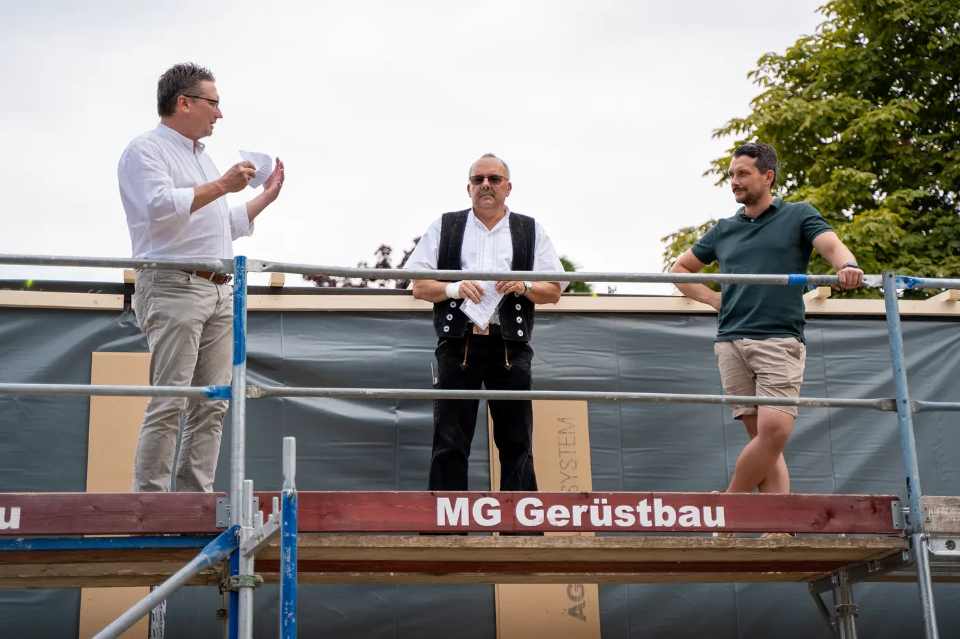 Um Interessierten einen ersten Blick in den Neubau an der Hamburger Straße 5 in Gifhorn-Gamsen zu ermöglichen, luden Bauinvestor Heiko Mennenga, die Diakoniestation Gifhorn und die Stadt Gifhorn im September zu einem Tag der offenen Baustelle ein. Die Diakoniestation Gifhorn wird im Erdgeschoss eine Tagespflege mit 20 Pflegeplätzen pro Tag von Montag bis Freitag betreiben. Das 1. Obergeschoss bezieht die Verwaltung eines ambulanten Dienstes der Diakoniestation Gifhorn. Des Weiteren ist im 1. Obergeschoss eine Pflege-Wohngemeinschaft für maximal zwölf Personen geplant. Sechs barrierefreie Wohnungen, deren zukünftige Mieter „Service-Wohnen“ mit optional buchbaren Pflege- oder Haushaltsleistungen in Anspruch nehmen können, werden im 2. Obergeschoss Platz finden. Besonders freuen sich die Beteiligten über die Idee, Alt und Jung unter einem Dach zu vereinen. Denn auch eine von der Stadt betriebene Kindertagesstätte wird im Erdgeschoss einziehen. Das mehrgeschossige Gebäude wird voraussichtlich Ende 2022/Anfang 2023 fertiggestellt. 34