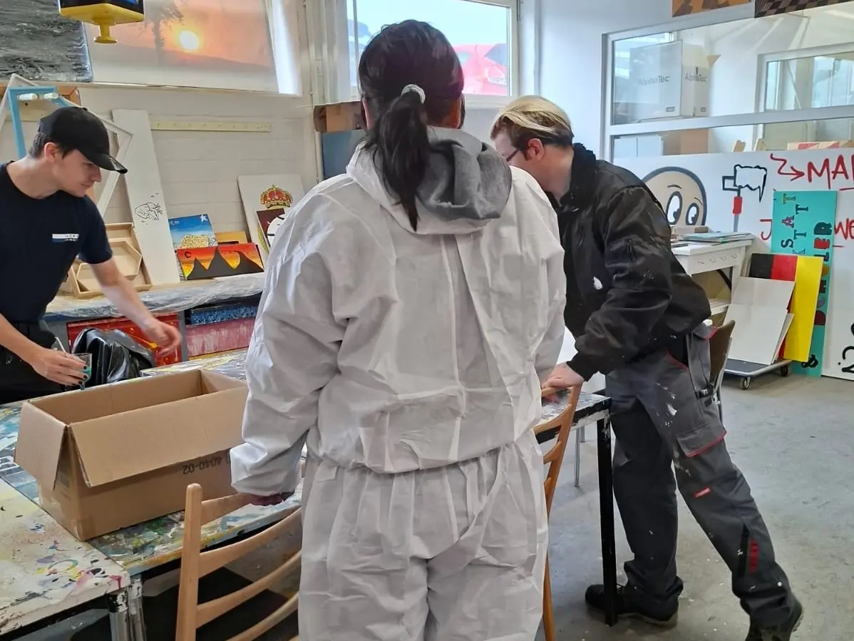Am Kuba Bildungscampus in Wolfenbüttel konnten die Jugendlichen in den verschiedenen Arbeitsbereichen der Jugendwerkstatt der Mehrwerk gGmbH selbst aktiv werden. In den Bereichen E-Commerce, Tischlerei und Malerwerkstatt bekamen sie praktische Einblicke und konnten selbst mit anpacken: Vom Arbeiten am Computer über den Umgang mit Holz und Werkzeug bis hin zur Malerwerkstatt, in der es richtig bunt wurde.