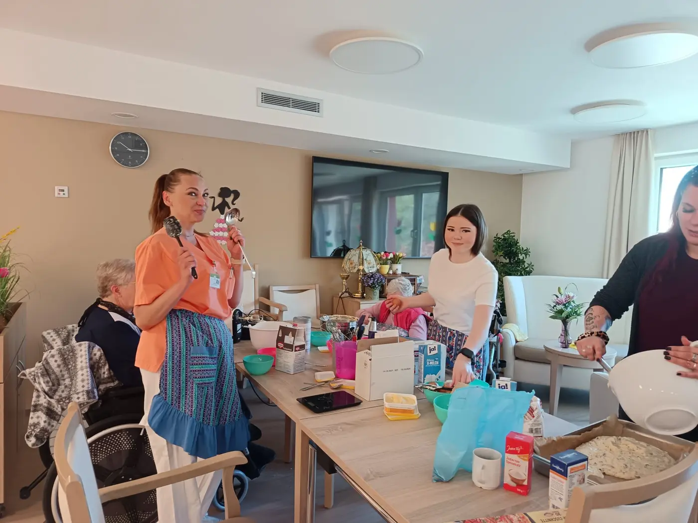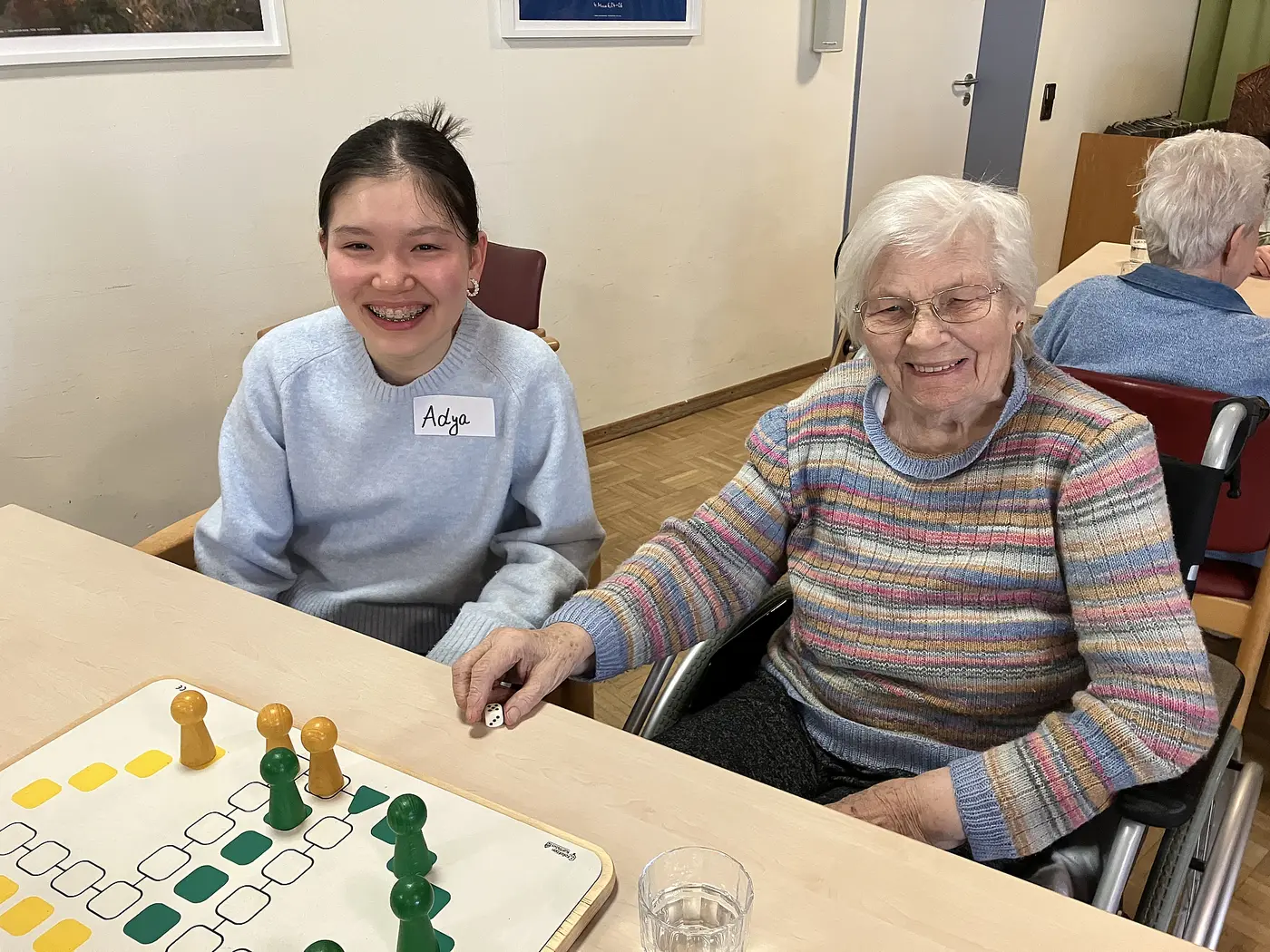 Im Senioren- und Pflegezentrum Bethanien stand der Vormittag ganz im Zeichen gemeinsamer Aktivitäten. Bei Brettspielen wie Mensch ärgere dich nicht, Rummikub oder Schach kam man schnell ins Gespräch. Zum Abschluss unterstützten die Schüler:innen beim Transfer der Bewohner:innen zurück in die Wohnbereiche, bevor es gemeinsam zum Mittagessen ins Café Parkblick ging. Im Theresienhof Goslar wurde gemeinsam gebacken und die Jugendlichen halfen bei der Mobilisation der Bewohner:innen.