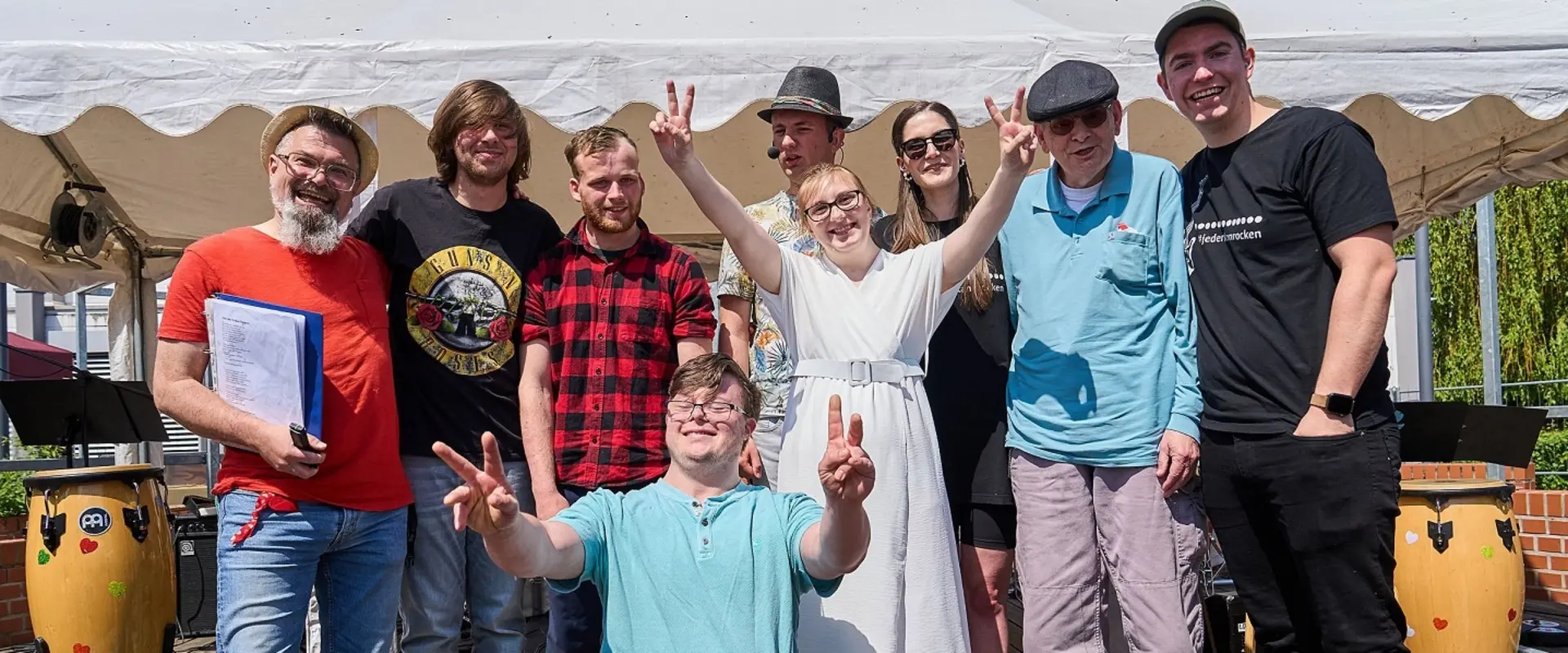 Viele Bürger aus Neuerkerode stehen selbst gern im Mittelpunkt des Geschehens − auf der Bühne. Auf dem Dorfplatz treffen sich Tanzgruppen, Musikkreise, Gitarrengruppen, Trommelgruppen, Karaoke-Clubs. Auf der Bühne finden Generalproben statt, werden Musicals aufgeführt, treten Künstler auf, werden Gottesdienste abgehalten, Ansprachen und Klönschnack gehalten. Mit unserem Vorhaben nutzen wir vorhandene Bausubstanz, gestalten das Dorfzentrum um, schaffen einen zusätzlich geschützten Raum und damit einen weiteren Ort der Begegnung. Einen Ort für das inklusive Miteinander, denn im Miteinander liegt das Glück.